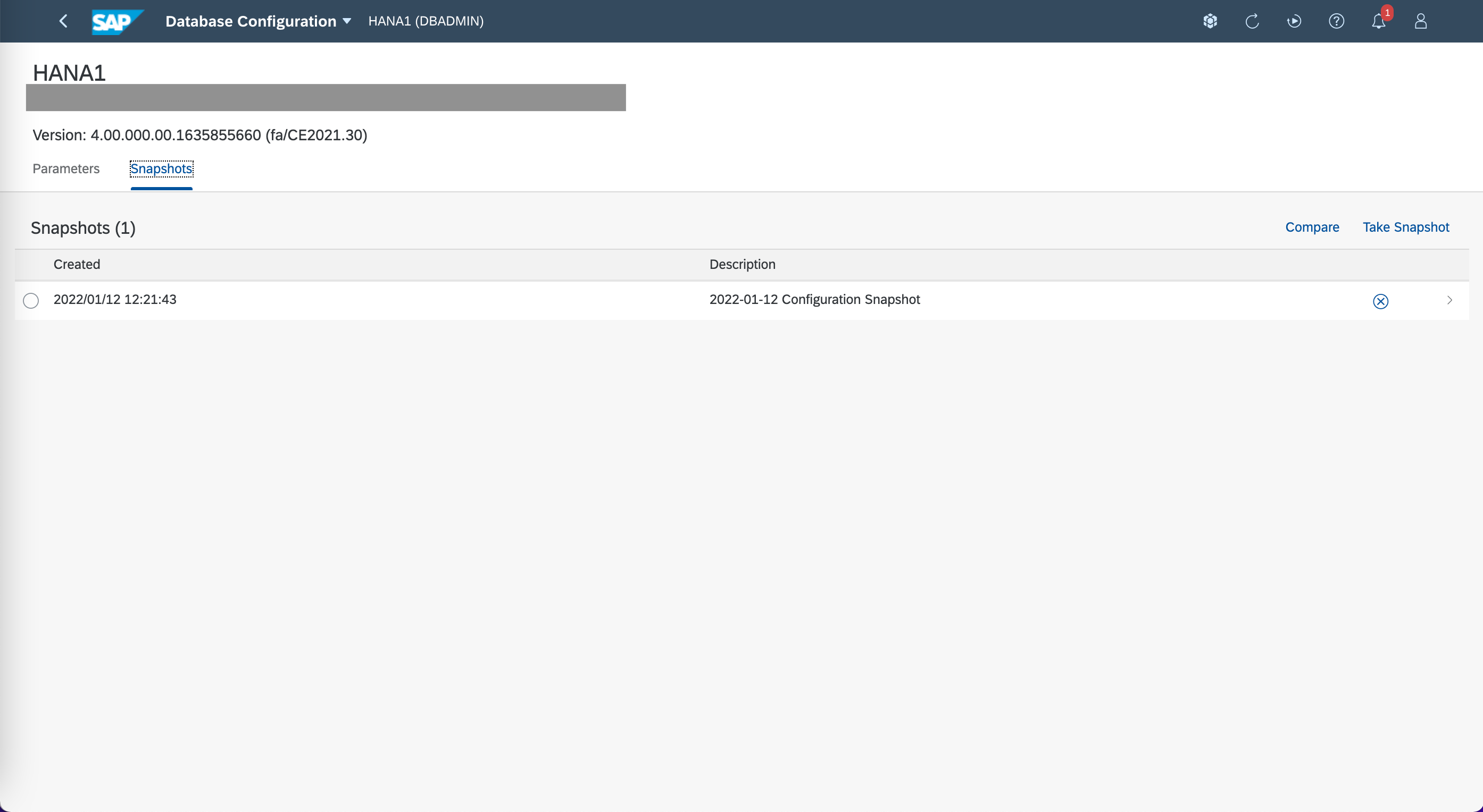 6. 현재 Configuration 파라미터 설정을 Snapshot 형태로 저장할 수 있습니다. 이를 통해 향후 과거 Snapshot과 현재 설정을 비교할 수 있습니다. "Take Snapshot"을 선택하면 Snapshot을 생성할 수 있습니다.