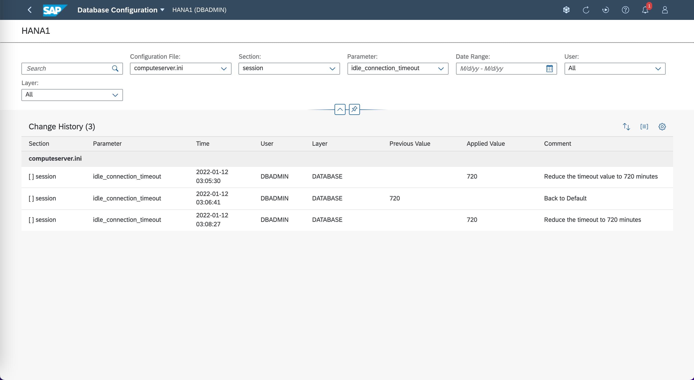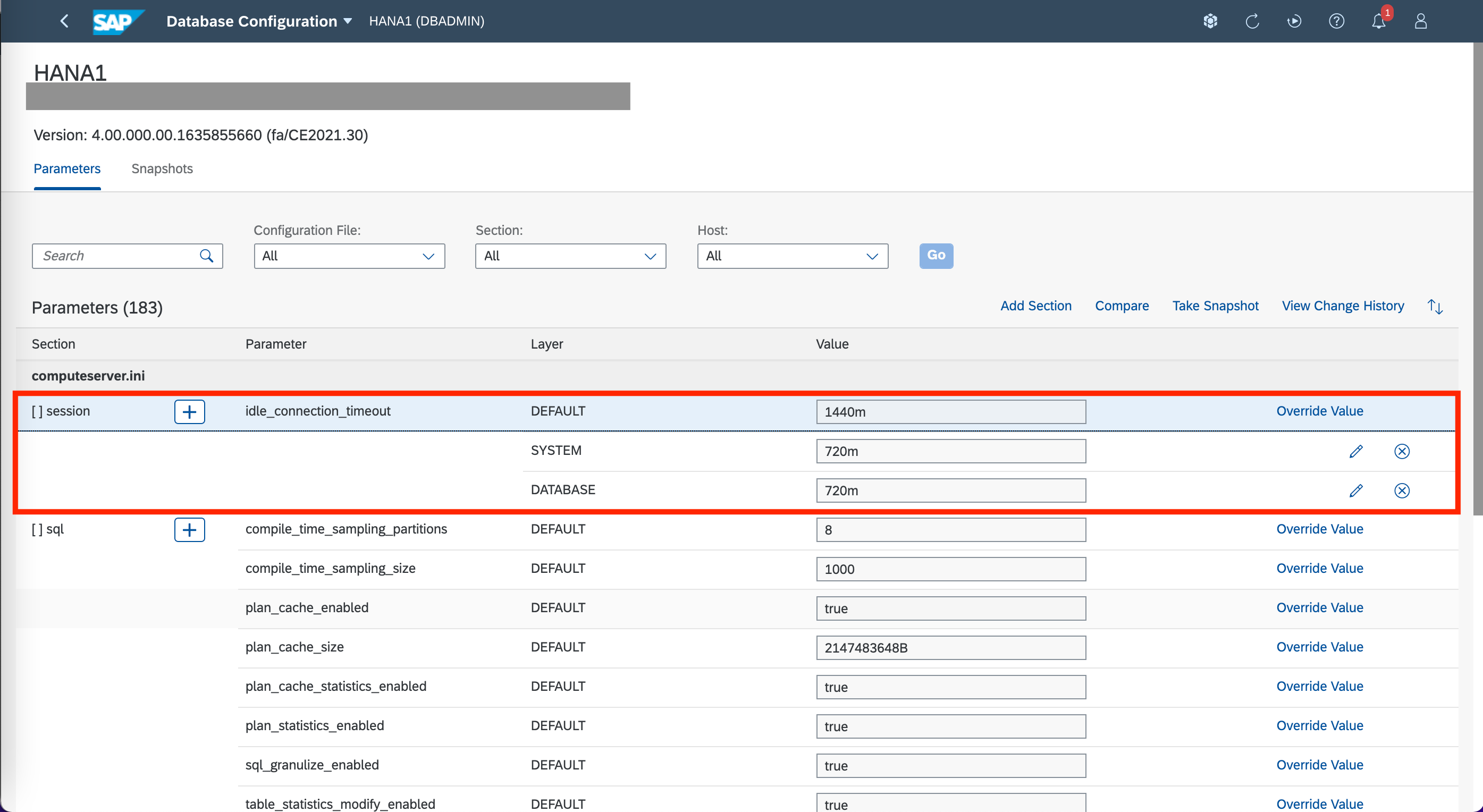 HANA database의 Congifuration 파라미터를 조회하고 필요에 따라 변경할 수 있는 기능을 제공합니다. SAP HANA Cockpit을 통해 GUI 형태로 수행이 가능합니다.