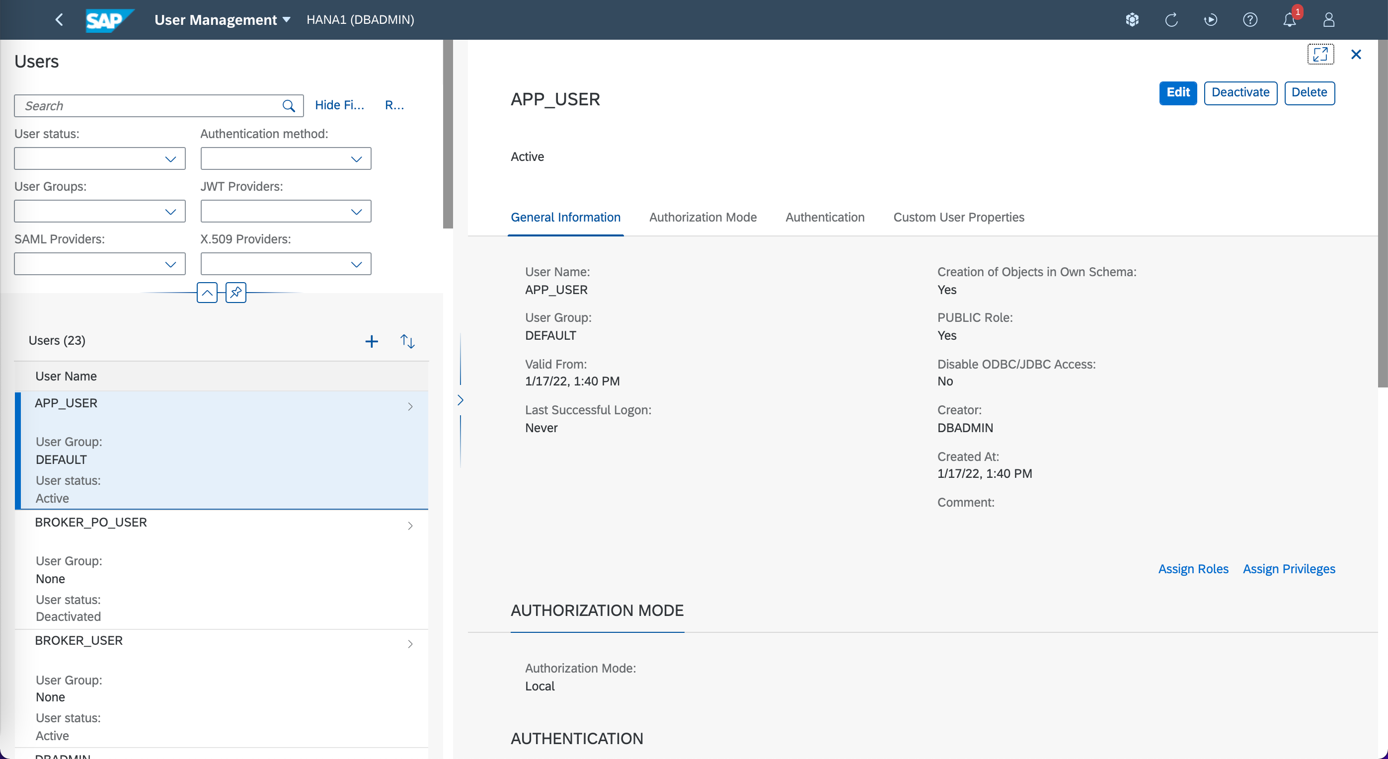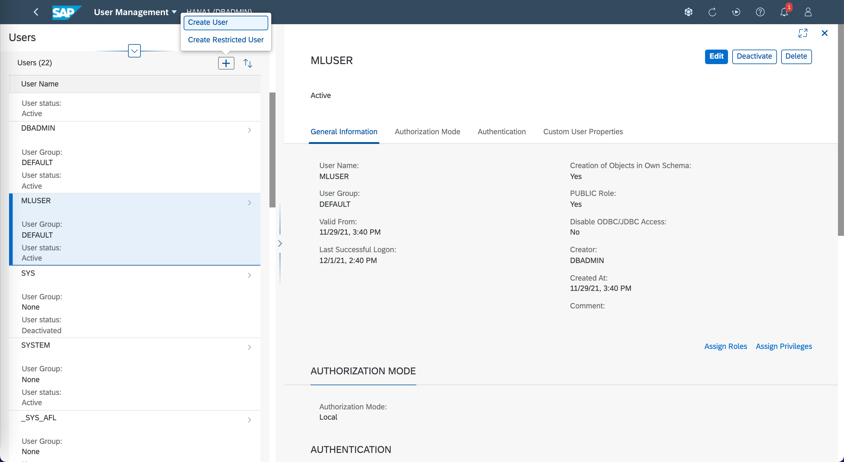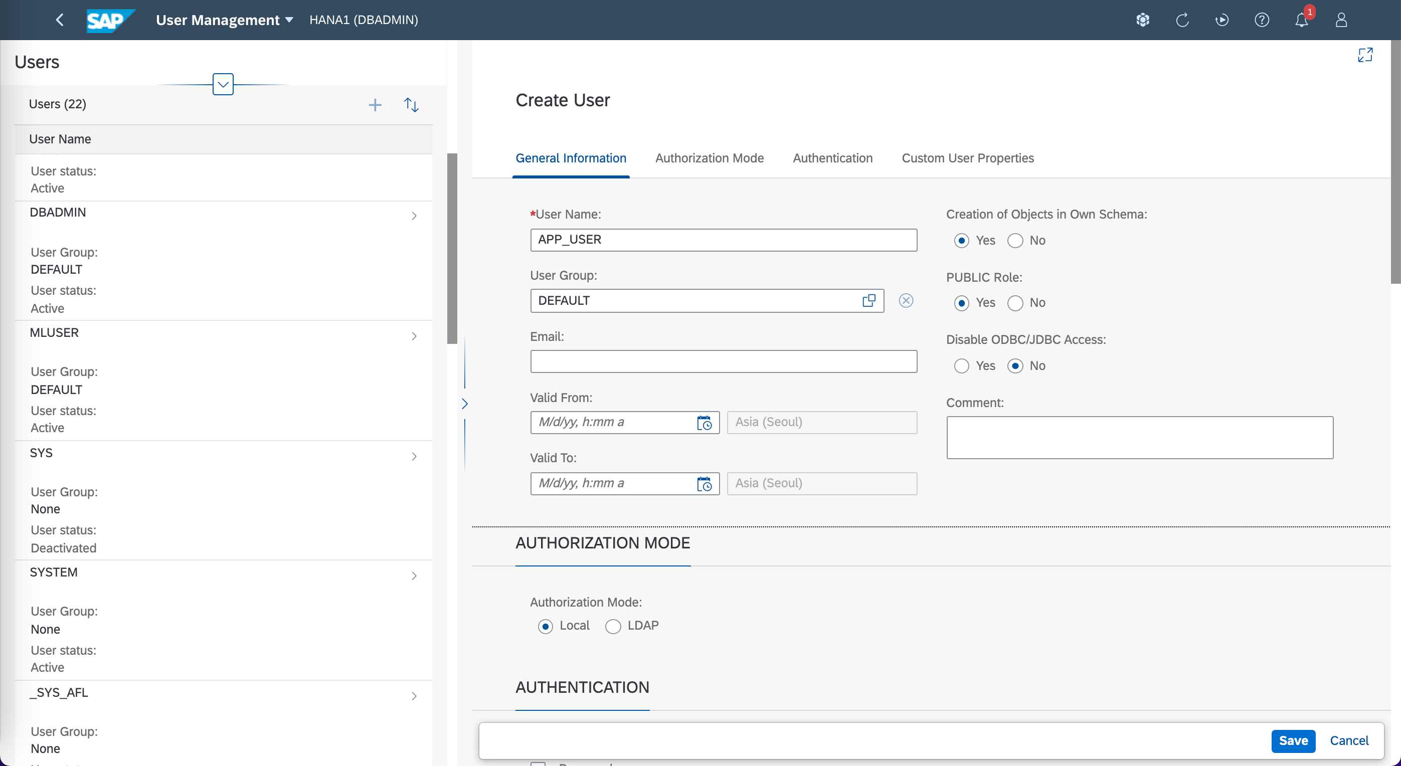 HANA database의 데이터베이스 사용자를 생성, 수정, 삭제를 수행하고 다양한 Privilege를 부여, 회수할 수 있습니다.