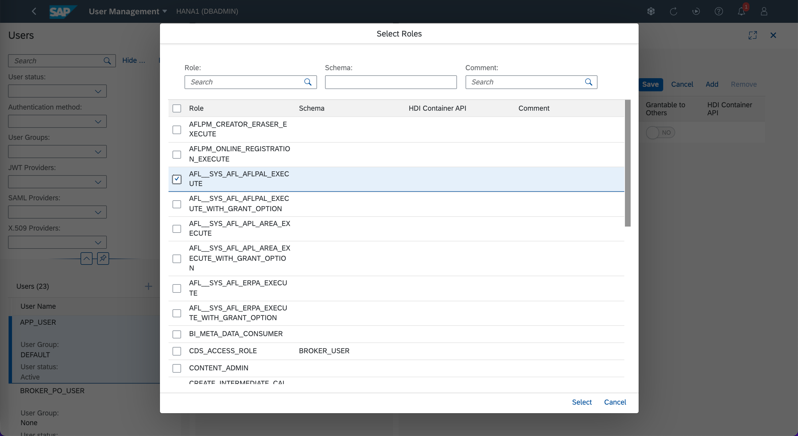 - sap.pa.apl.base.roles::APL_EXECUTE : APL 알고리즘 실행 권한